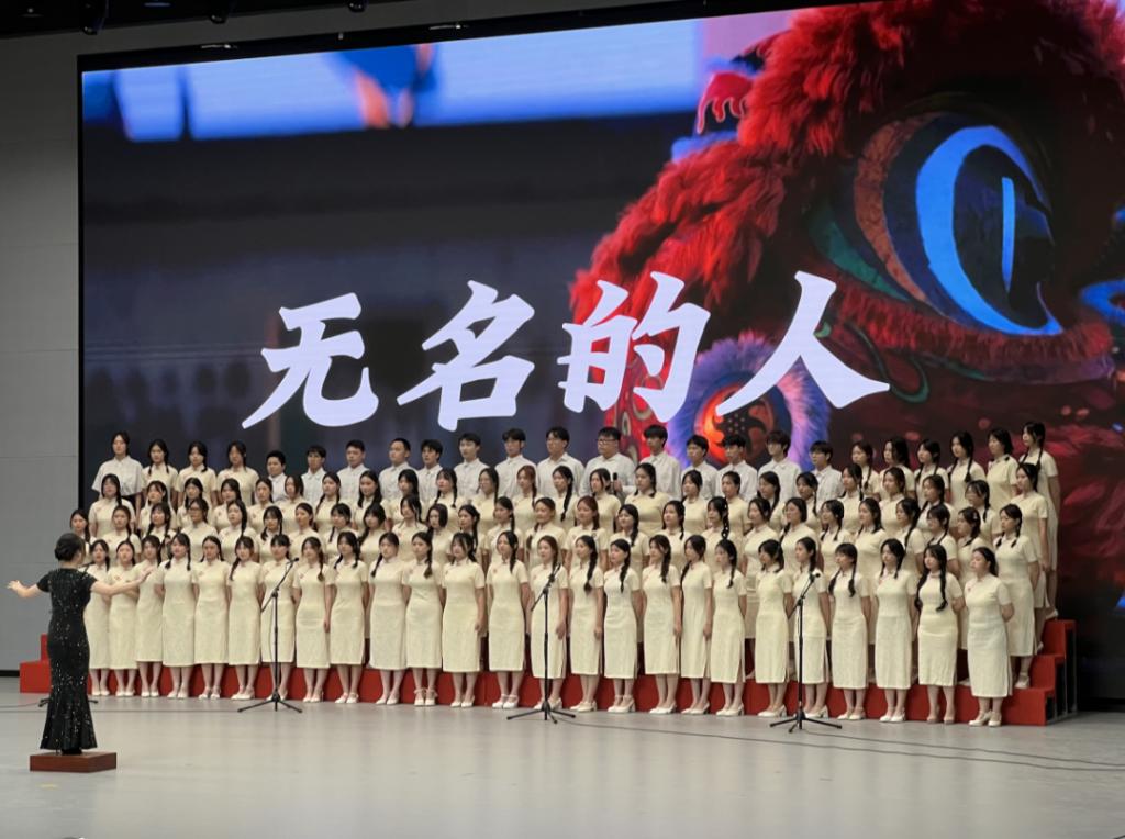 公司合唱团作为第四支参赛队伍,以《无名的人》和《玉盘》两首曲目震撼全场。首曲《无名的人》以深沉旋律致敬各行业默默奉献的无名英雄,诠释了新时代青年对平凡岗位中非凡坚守的深刻理解。曲调转换间,一首诗意盎然的《玉盘》随即流淌,通过灵动歌声展现对中国发展成就的礼赞,唱响青年学子对美好未来的憧憬与奋斗决心。