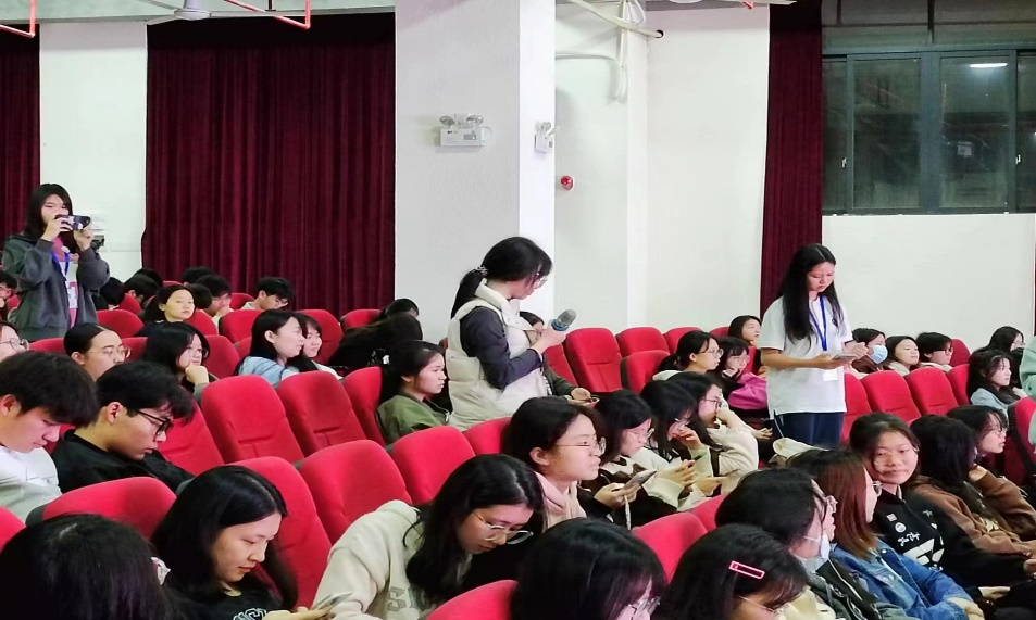 提问环节,同学们踊跃发言,刘亮书记和黄静主任针对同学们提出的有关教团队格证考试、岗位招聘、学科选择等问题进行耐心回答,并重点提及选择学科方向时应遵循两个原则。第一个是兴趣原则,第二个是胜任原则,无论选择哪一个方向,如果超出自己的能力范围,应慎重进行权衡并选择是否进行挑战。
