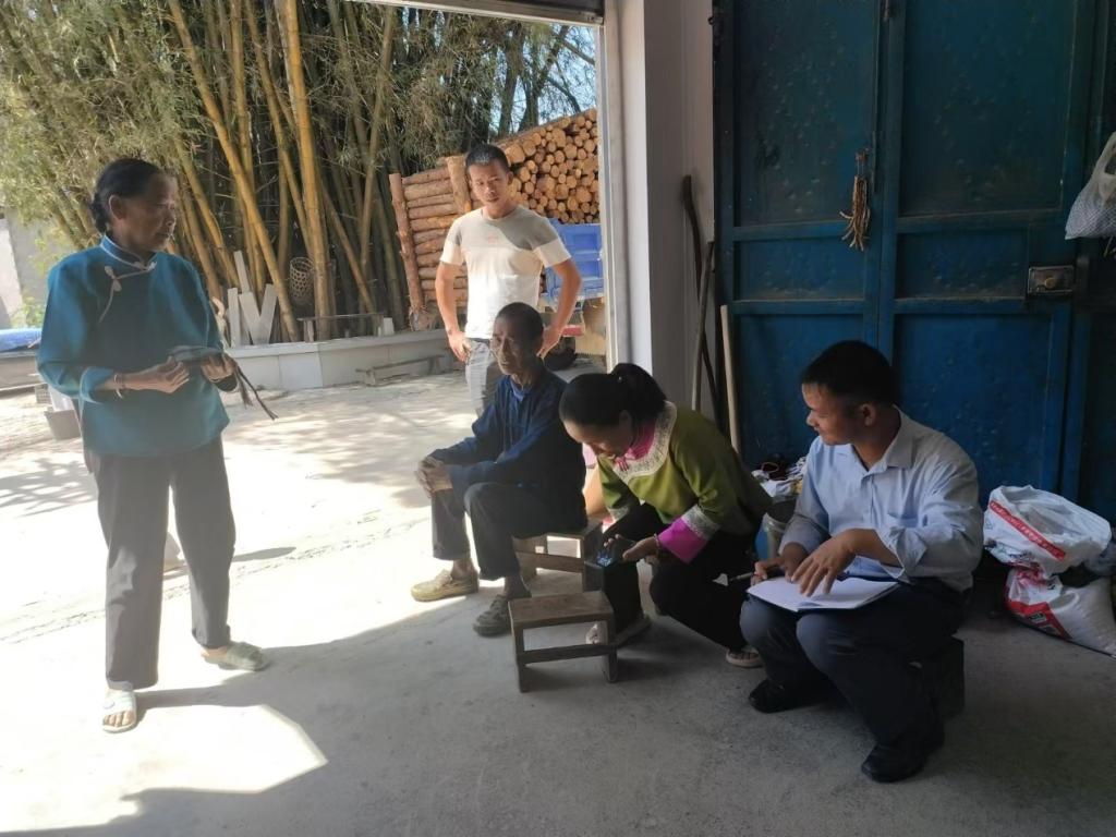 覃守达教授(右一)在木顶村村民农艳春(右二)中采访娅王文化