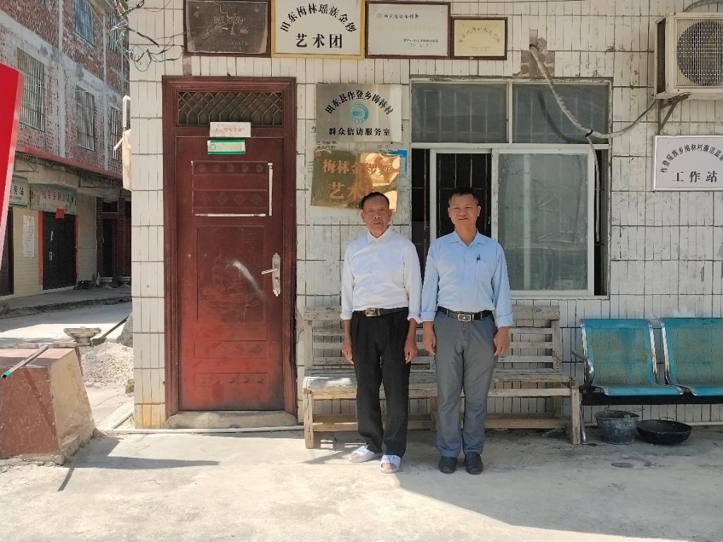 覃守达教授(右一)采访了田东县壮族和瑶族共同传承的“金锣舞”国家级非遗传承人阮桂陆