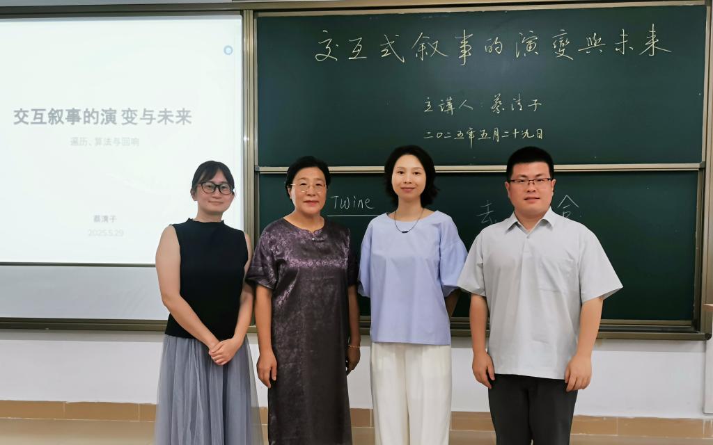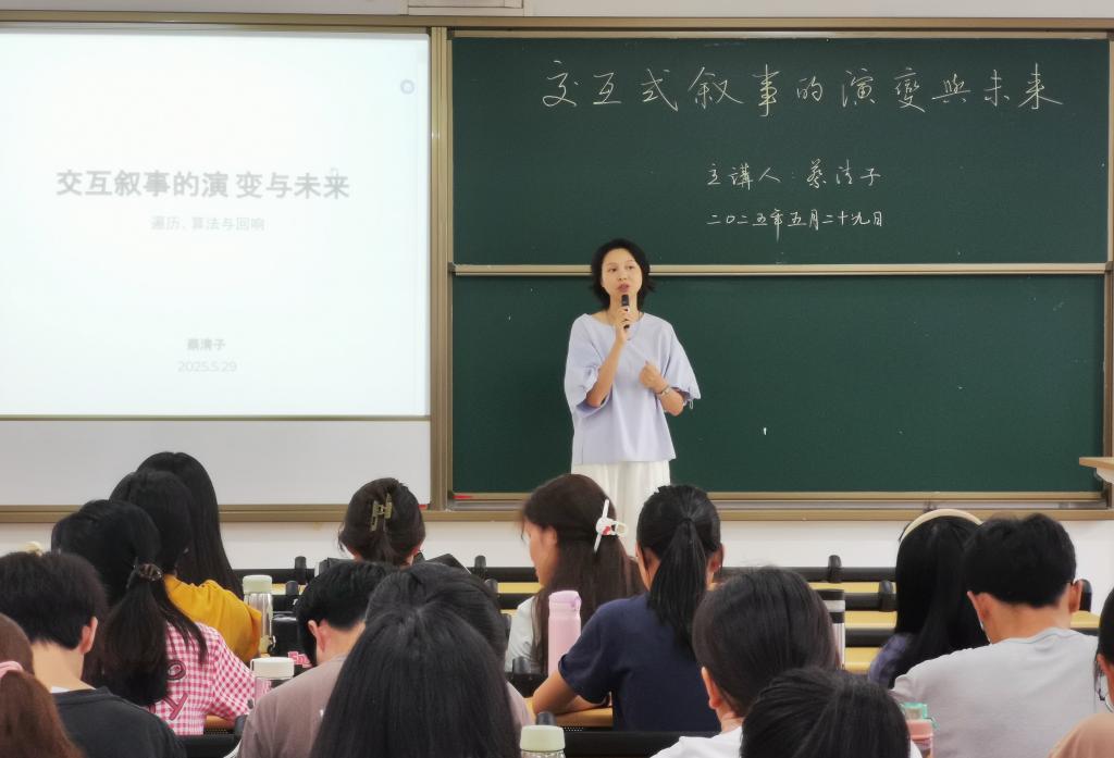 讲座中,蔡清子老师梳理了交互式叙事的发展历程,从传统文学到数字媒介时代的叙事革新,深入剖析了技术变革对叙事形式的深远影响。她结合交互式电影《人生,我自己选》,互动文字游戏以及前沿理论,探讨了人工智能、虚拟现实等技术如何拓展叙事边界,并展望了未来交互式叙事在文学、教育、娱乐等领域的应用前景。