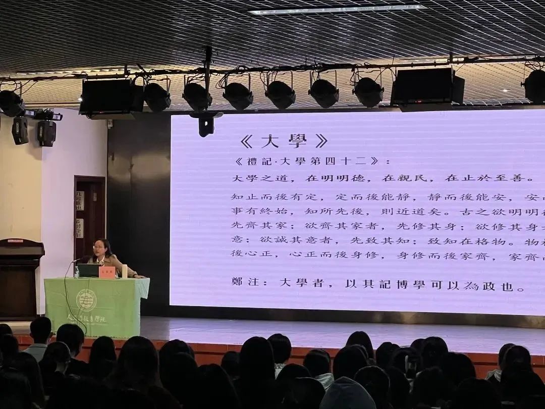 11月8日,汉语言文学系系主任汪美葵博士主讲的“四书五经解”讲座在2号报告大厅举行,伟德国际victor1946汉语言文学专业员工参加此次讲座。
