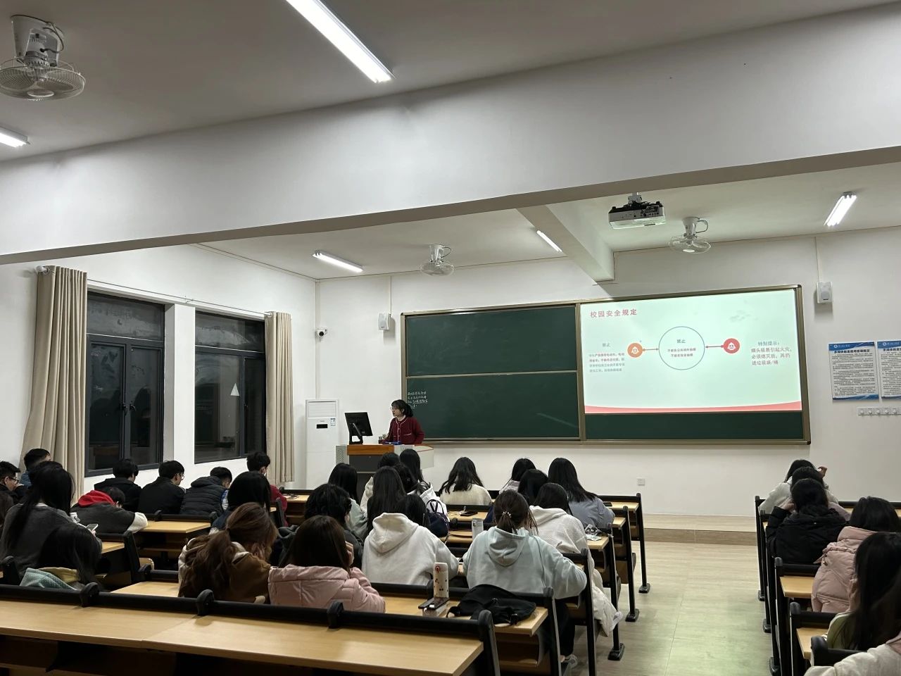 之后,会议重点提醒同学们在校园内要注意消防安全、宿舍用电安全、财产安全、交通安全、施工安全,列举出一系列安全隐患导致的具体事例,让同学们更能生动体会安全隐患带来的危害,并列举出预防方法与使用规范,呼吁同学们自觉遵守,同时对身边的人进行监督。