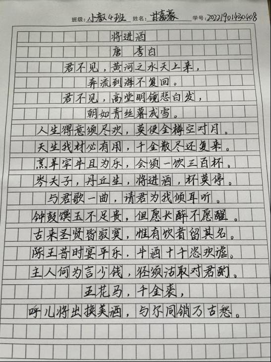 同学们表示:“平时学习压力大,通过书法活动,我可以释放压力,放松心情。而且,写书法让我感受到一种与电子设备无关的纯粹,仿佛与历史和传统文化进行了一次心灵的对话。”“书法不仅是一种艺术,更是一种修身养性的方式。通过练习硬笔书法,我不仅提高了自己的审美水平,还培养了耐心和专注力。”