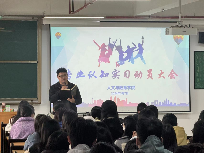 为落实公司小学教育专业人才培养方案,促进员工知行合一,理论与实践相结合。公司21级小学教育专业各个班级将在3月11日-3月29日前往广州理工实验搜狗参加专业认知实习活动。7日下午,公司在13栋501召开2023-2024第二学期21级小学教育专业认知实习动员大会,本次大会由实习指导老师张丽娜主持,出席本次会议的有伟德国际victor1946副经理杨东,教育系主任黄静,指导老师马天翼、马会媚、钟正美,辅导员石淳,以及小学教育专业170余名同学共同参加本次动员大会。