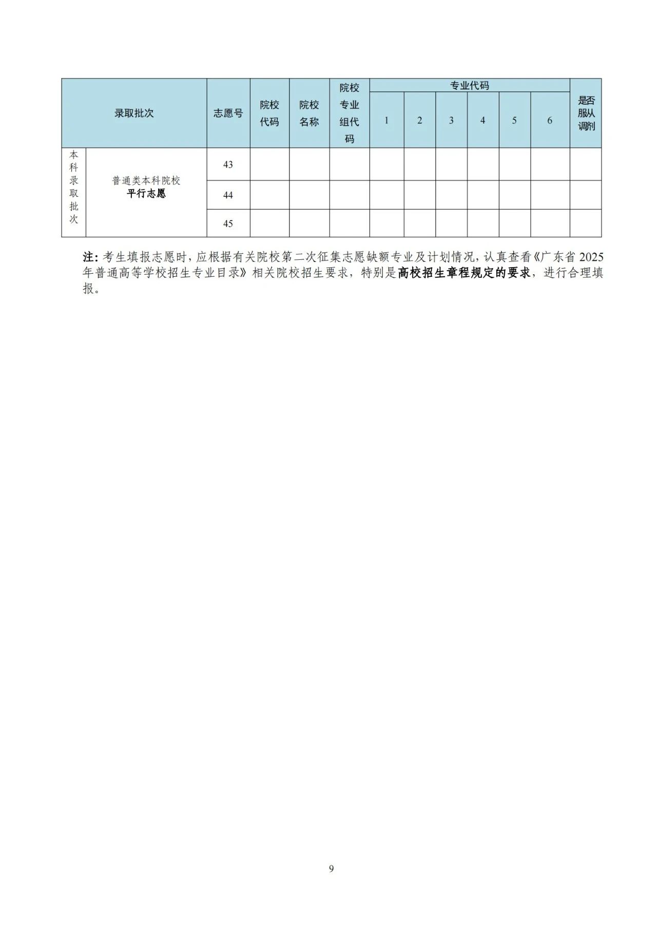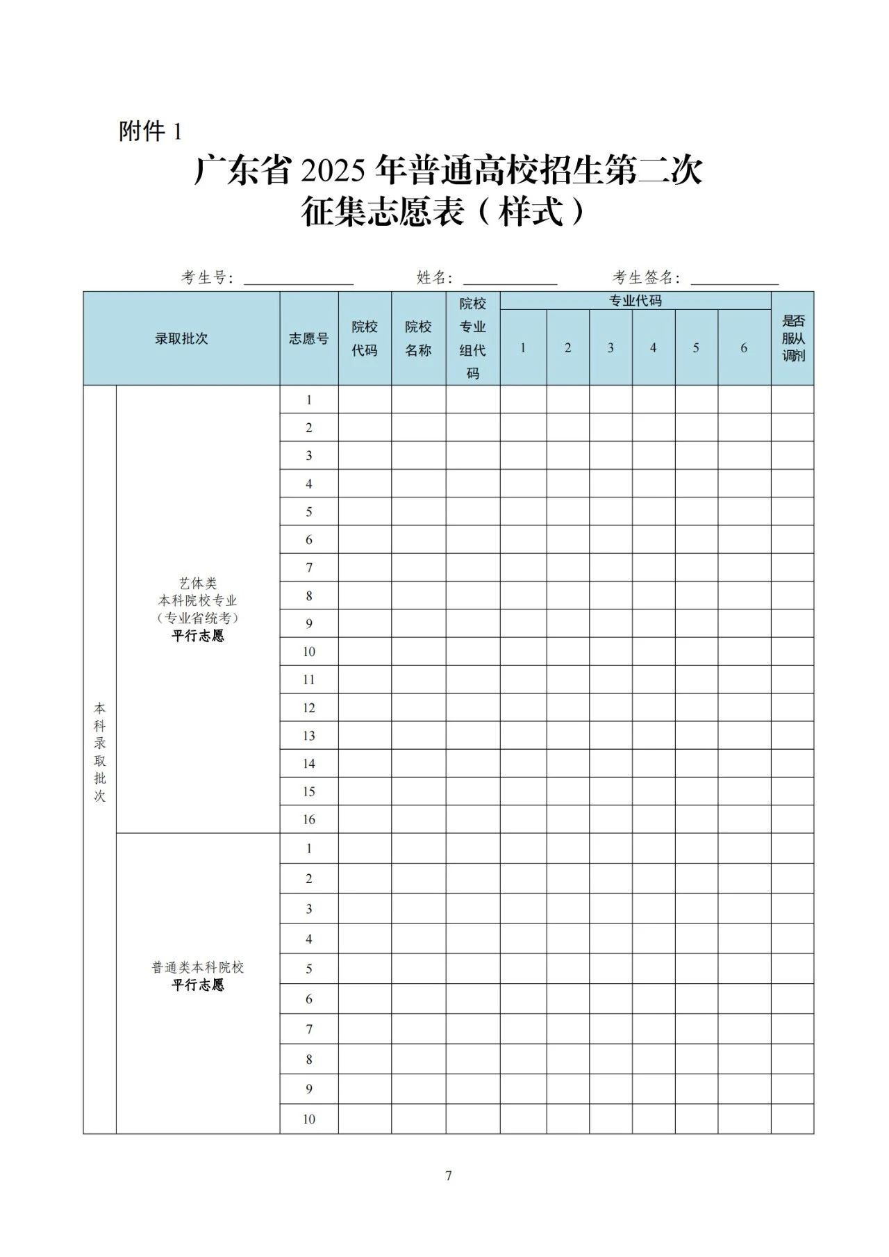 1.广东省2025年普通高校招生第二次征集志愿表(样式)