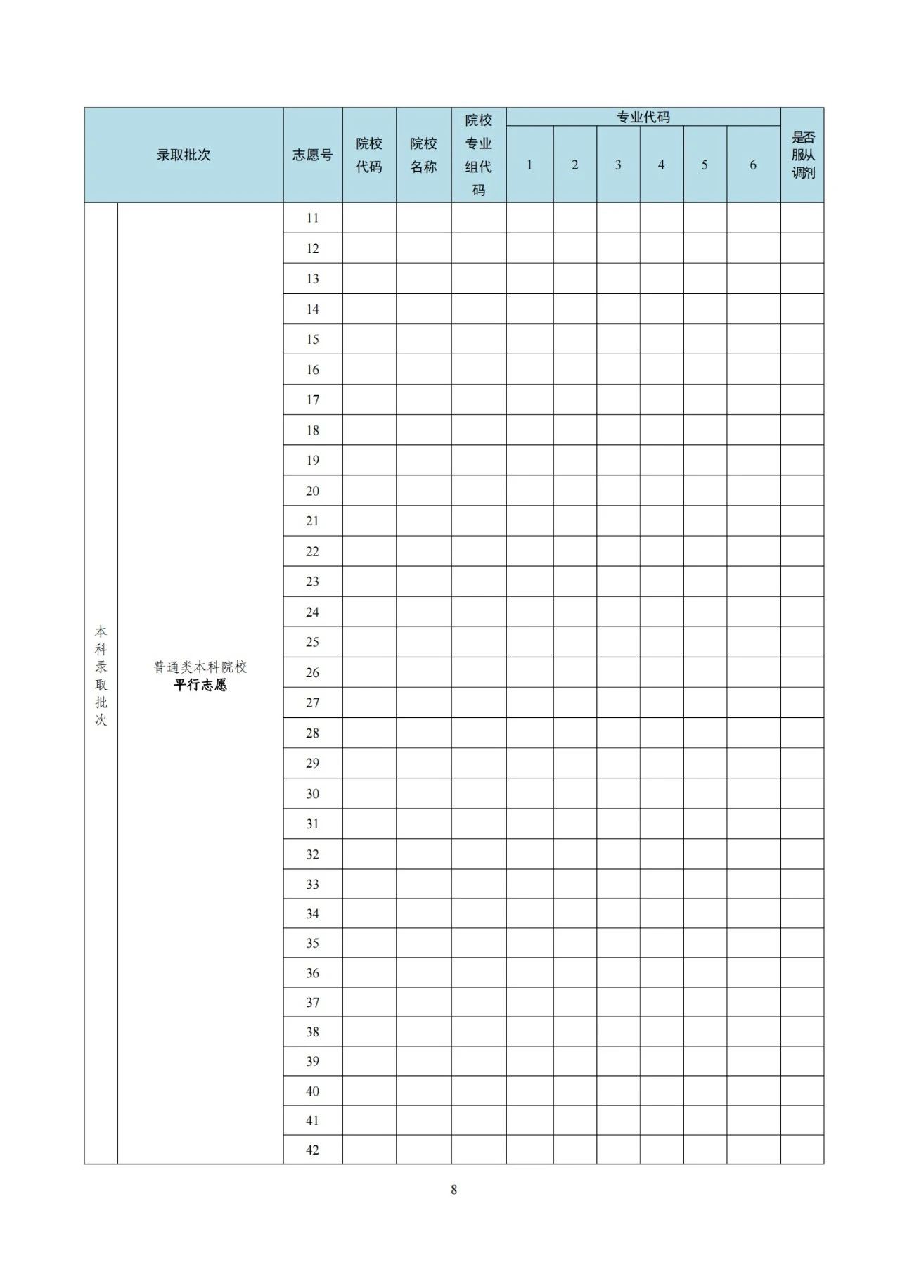 1.本科批次院校普通类(历史、物理)可填报45个院校专业组志愿,每个院校专业组可填报6个专业志愿及1个是否服从调剂选项;体育类、艺术类可填报16个院校专业组志愿,每个院校专业组可填报6个专业志愿及1个是否服从调剂选项。
