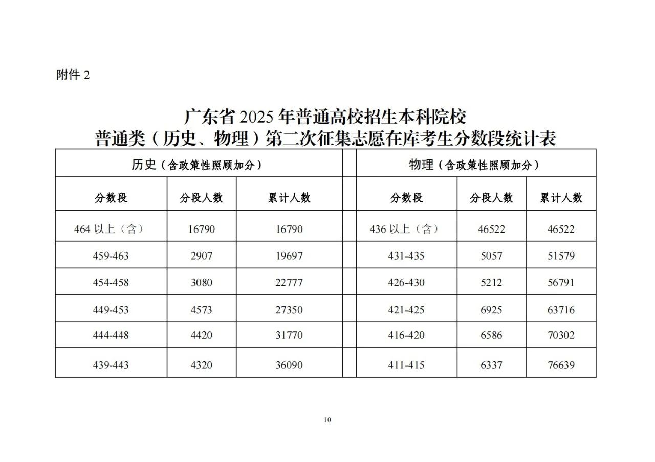 2.广东省2025年普通高校招生本科院校普通类(历史、物理)第二次征集志愿在库考生分数段统计表