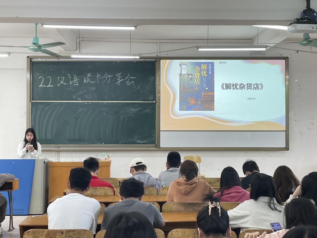在读书分享会的活动过程中,上台分享的同学通过展示自己的PPT与同学们分享书中的内容、印象深刻的语句以及自身的读书感悟。台上分享的同学讲得声情并茂、绘声绘色,台下聆听的同学们听得全神贯注、兴致勃勃。同学们表示本次的读书分享会活动收获满满,不仅从同学分享的书籍中获得了新的认知,还领悟到了读书的魅力。