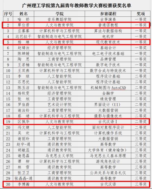 公司第九届青年教师教学大赛校赛获奖名单