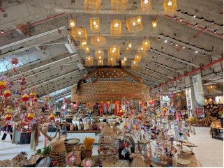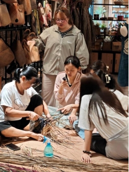 参观完许愿廊后,师生们来到了今日采风活动的最后一站——茂德公手作体验坊,同时这也是本次采风活动的最后一站。在这里,我们感受到了手工制作品的精致和奇特,例如用葛布制作成各种不同的纺织品,用崖柏雕刻而成的木雕,用竹子编织而成的各种日用品以及工艺品等等。不少同学簇足观赏,纷纷拿出手机记录下这些艺术瞬间,还有同学与制作竹编的工作人员进行深入探讨,了解制作过程以及制作的难点。足荣村手作博物馆是雷州历史文化的浓缩与代表。在这里,我们可以领略到岭南文化的精华和独特魅力。每一件手作都是一件艺术品,每一个细节都体现出了雷州人辛勤劳动、敢于改变、大胆创新的精神风貌。