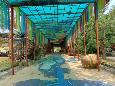 接着,师生们来到了茂德公大观园的许愿廊,许愿廊中的《牵手记》即是描述了茂德公夫妇的爱情故事,更是千万人的爱情,它超越了“牵子之手,与子偕老”,而是体现了无数人所向往的美好生活。在许愿廊里,你可携一把连心锁,挂一枚许愿牌,许下你美好的愿望并将其牢牢系在廊上,从此你便有了天地的祝愿,人们也可以用双手抚摸许愿牌,共同沾上喜气,这无不体现“大同”思想,也是对于所有人美好生活的向往。师生们不仅感动于许愿廊背后的故事,更体会到其背后深深的内涵。