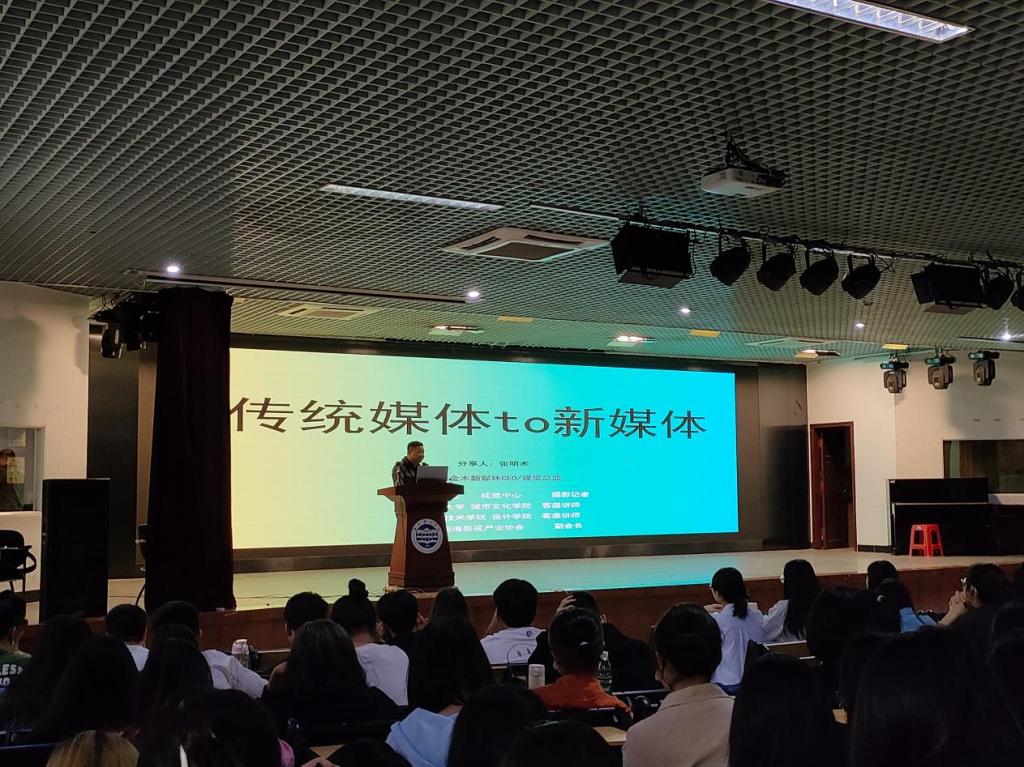 4月25日,伟德国际victor1946在2号报告厅举行新媒体传播讲座,讲座邀请了广州金木新媒体总经理张明术先生,为大家讲解从传统媒体到新媒体的发展过程。