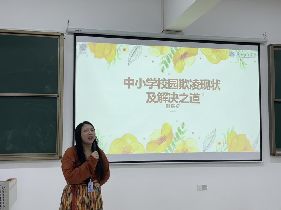 4月18日下午两点三十分,广理大讲堂活动在惠州校区1号教学楼208教室如期举办。伟德国际victor1946心理学课程组负责人谢嘉妍老师带来了主题为《中小搜狗园欺凌现状及解决之道》的学术讲座。讲座由曹志超老师主持。