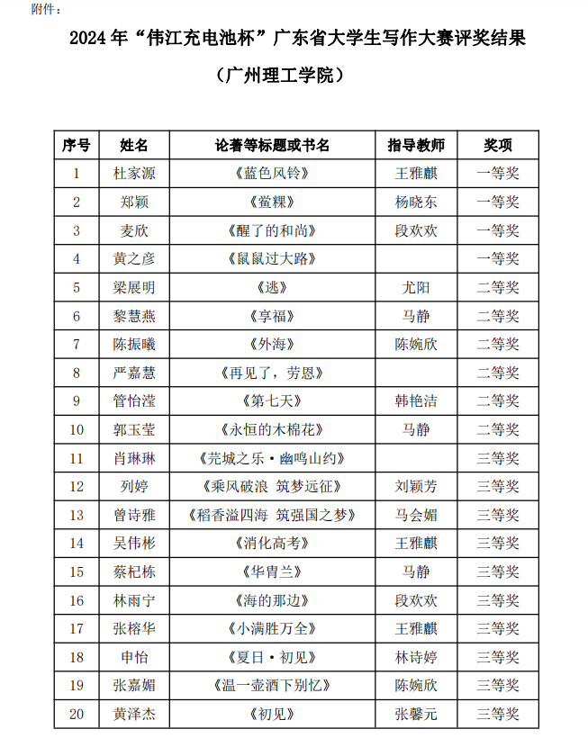 附件:2024 年“伟江充电池杯 ”广东省老员工写作大赛评奖结果(伟德国际victor1946)