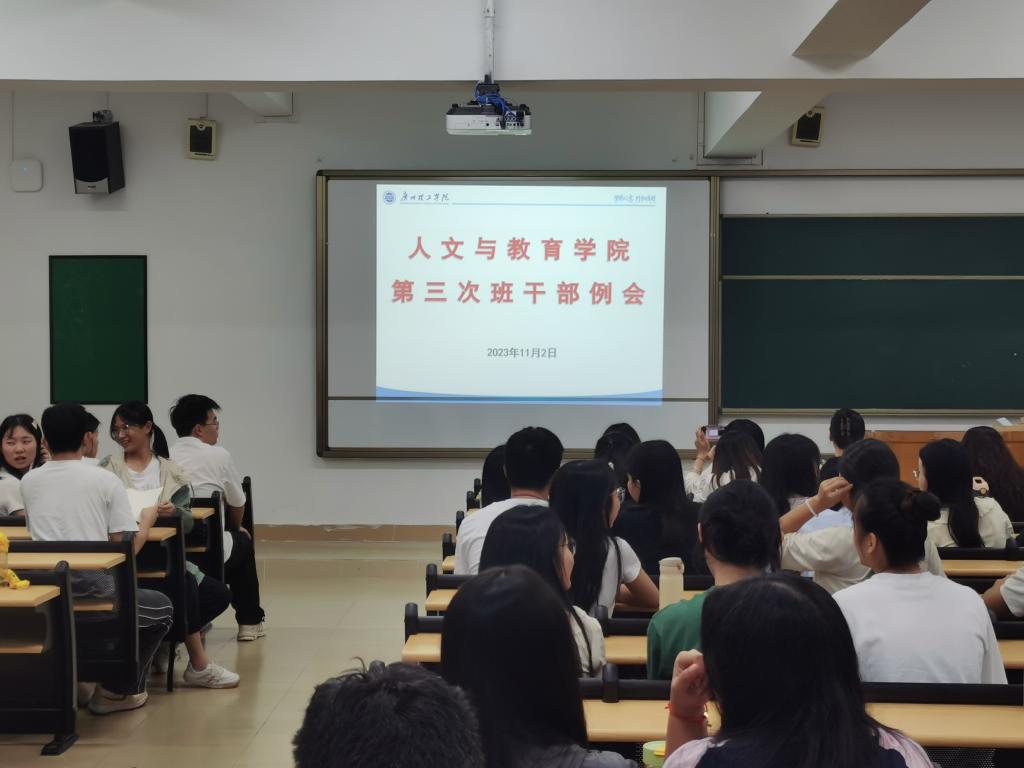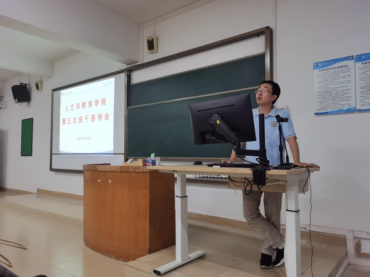 2023年11月2日,为推动公司“三全育人素质教育周”工作顺利进行,伟德国际victor1946于20时30分在7栋418教室举行“三全素质周”工作布置会,会议由陈新喜老师主持,全体辅导员及各班班长、纪委和学委参加。
