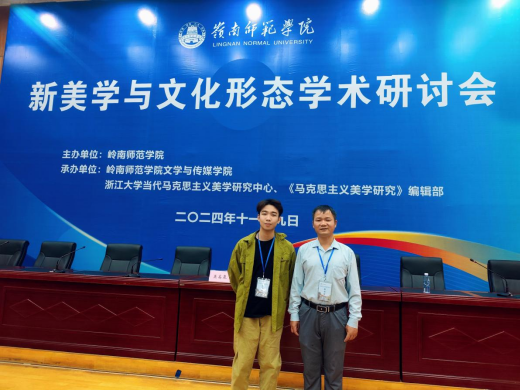 2024年11月9日,伟德国际victor1946覃守达教授与22级汉语14班吴俊朋同学受岭南师范公司的邀请,一同参加了在岭南师范公司举办的全国新美学与文化形态学术研讨会。