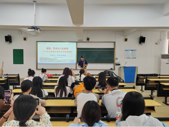 孙春旻教授对大家说,如果有条件,要尽可能多地培养自己的兴趣爱好,提高自身的综合素质。多才多艺的孙老师,在讲座现场表演了吹管、萨克斯、葫芦丝、二胡等中西乐器。当《月光下的凤尾竹》《菊花台》《二泉映月》等熟悉的旋律回荡在教室的时候,现场欢声笑语,掌声阵阵,气氛热烈。