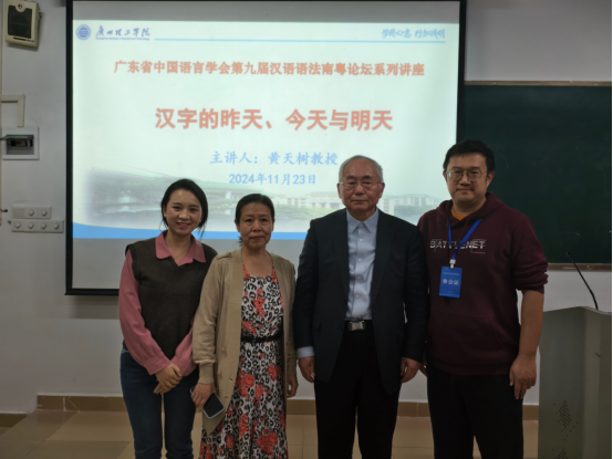 2024年11月23日下午15:00-17:00,公司有幸邀请到清华大学出土文献研究与保护中心的著名教授黄天树先生,在白云校区7-208教室为师生们带来了一场题为《汉字的昨天、今天与明天》的精彩讲座,讲座由郑仲桦博士主持。此次讲座作为“广理大讲堂”系列的重要组成部分,吸引了众多师生前来聆听,现场座无虚席。