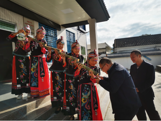 在嶂背畲族村党群服务中心门口,考察组受到了热烈欢迎。