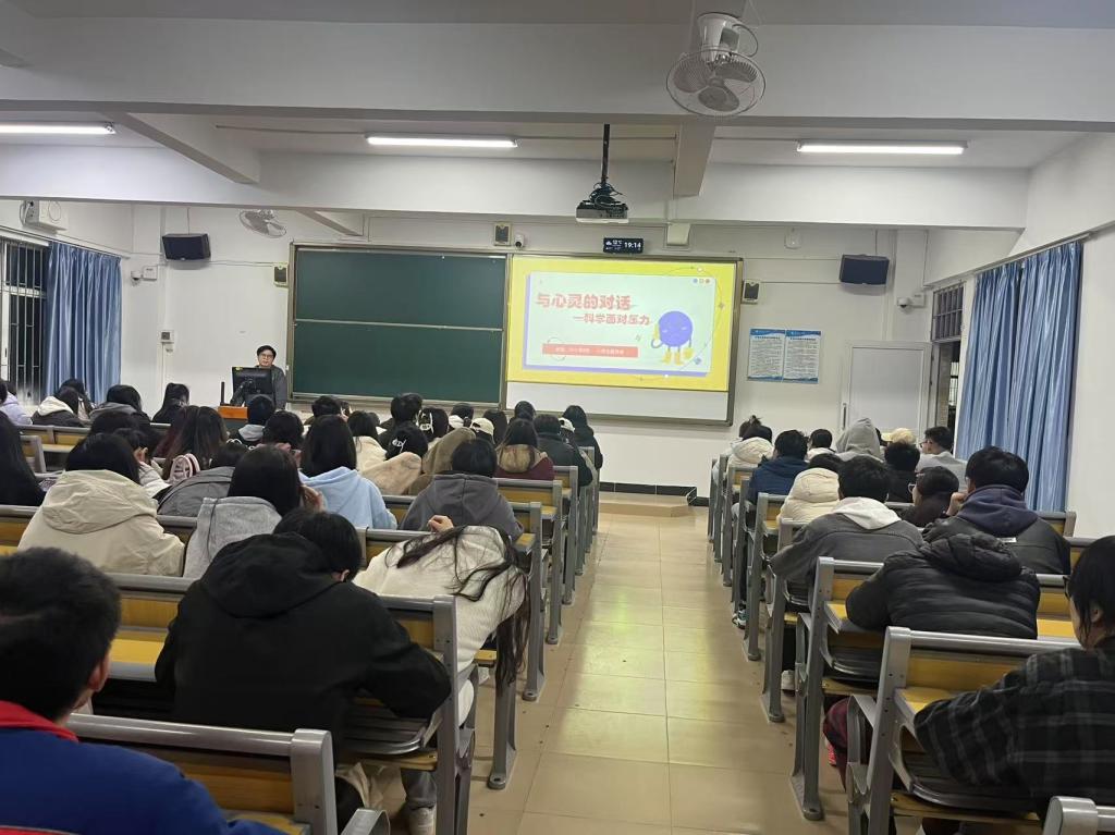 各班心理委员运用精心制作的PPT,阐释老员工常见心理问题,如学业压力、人际关系困扰、未来职业迷茫等,并详细介绍这些问题产生的原因,如角色转变适应困难、自我认知偏差等,让同学们对自身心理状态有更清晰的了解。