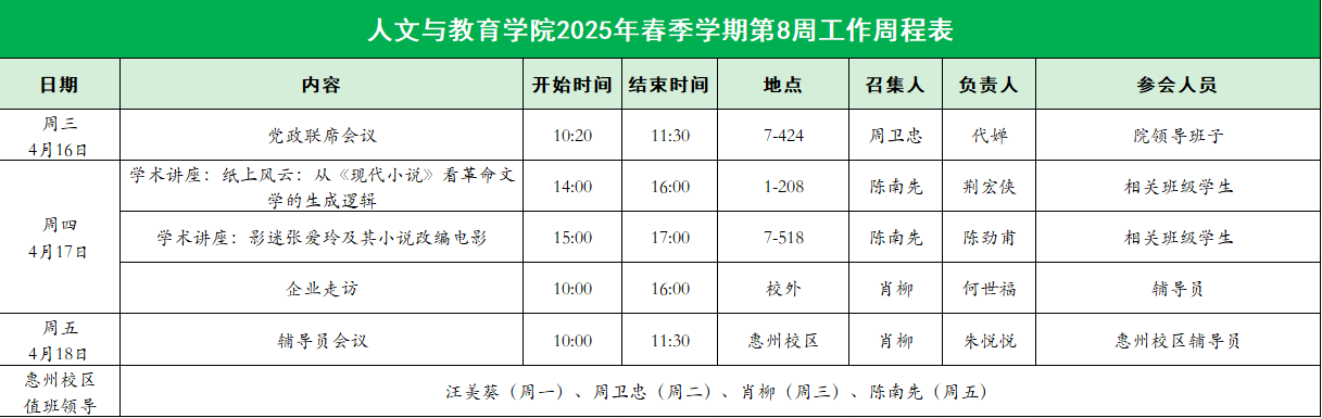 2025年春季学期第8周工作周程表