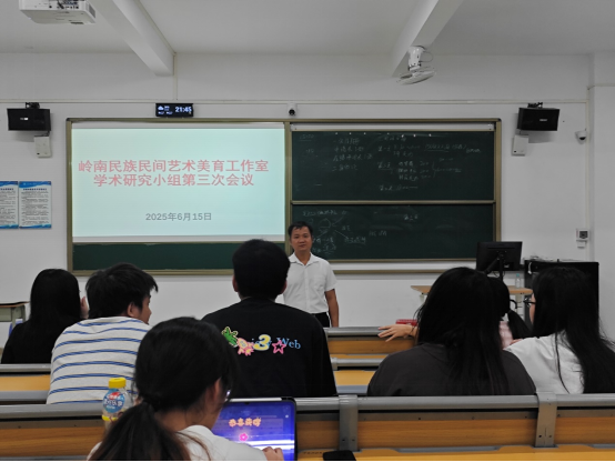 2025年6月15日,岭南民族民间艺术美育工作室、岭南民族民间艺术美育协会学术小组在6-301成功召开了第三次会议。本次会议由学术小组组长22中文16班罗敏俐同学主持,指导老师覃守达教授亲临现场指导,围绕学术小组的论文选题进一步展开讨论,旨在明确研究方向,为接下来的学术研究和实践活动奠定坚实基础。