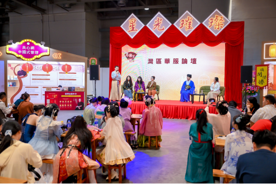 除了论坛以外,新增了国潮文脉沙龙,邀请了国内知名的传统服饰的教授、专家和受欢迎的国风博主,结合2025年粤澳名优商品展的主题“银发经济”和“国潮经济”,浙江理工大学服装公司副教授黄子棉、屡次获外交部点赞的大热国风达人思喵、最受欢迎bilibili知名汉服穿搭博主之一亚力克山大、广东职业技术公司服装设计讲师及襦一坊非遗汉服工作室主理人陈一然和德国华夏文化研习与交流协会会长邵肖明从专业的角度去探讨如何让年轻人热爱的国潮代表——汉服与不同年龄层的群众结合,让更多市民可以感受到传统服饰文化在日常生活中的搭配,从服饰泛化影响的角度看经济热点与互联网潮流的经济赋能。