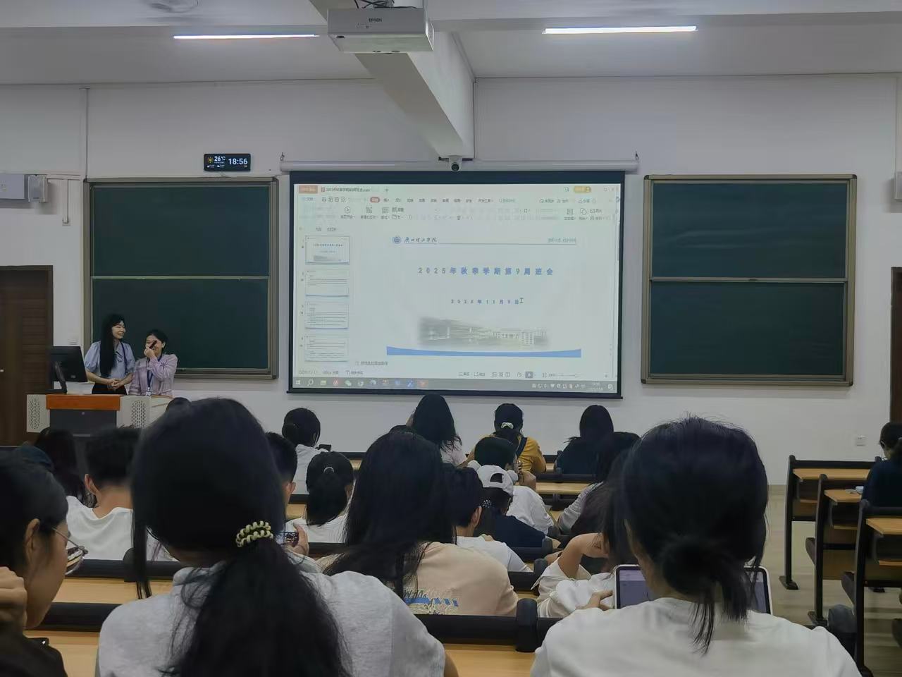 员工事务方面,第一,持续深化“我的行为我负责”员工自律行动与“我的班级我负责”班干部履职行动,通过明确员工个体责任与干部履职要求,凝聚师生协同育人合力,为优良学风建设筑牢基础;第二,细化课堂就坐管理要求:一方面鼓励同学们优先选择前排座位,营造积极向上的课堂氛围;另一方面明确合班上课时需按班级划分区域集中就坐,且团支书兼班长、纪律委员中至少1人需在本班区域最后一排就坐,确保及时响应课堂需求、发挥管理服务作用;第三,持续落实“两热”防控相关举措,反复提醒同学们做好每日个人卫生清洁,养成勤洗手、常通风、规范佩戴口罩等良好生活习惯,共同维护校园公共健康环境。