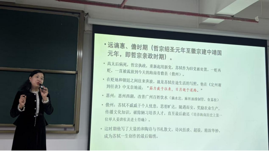 讲座最后,李婵娟教授总结:“苏轼的可贵之处,在于他从未被苦难摧毁。无论身处何种境遇,他都保持着对生活的热爱、对百姓的慈悲、对人格的坚守。他的‘一蓑烟雨任平生’,不仅是一种人生态度,更是一份穿越千年的精神滋养,照亮着每一个在风雨中前行的人。”正如泰戈尔所言,“生命以痛吻我,我却报之以歌”,这正是苏轼留给后人最珍贵的精神财富。