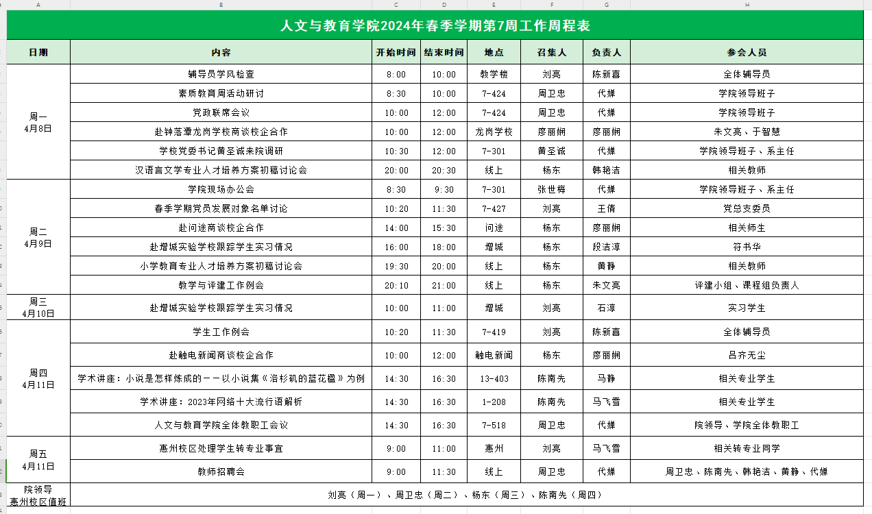 2024年春季学期第7周工作周程表