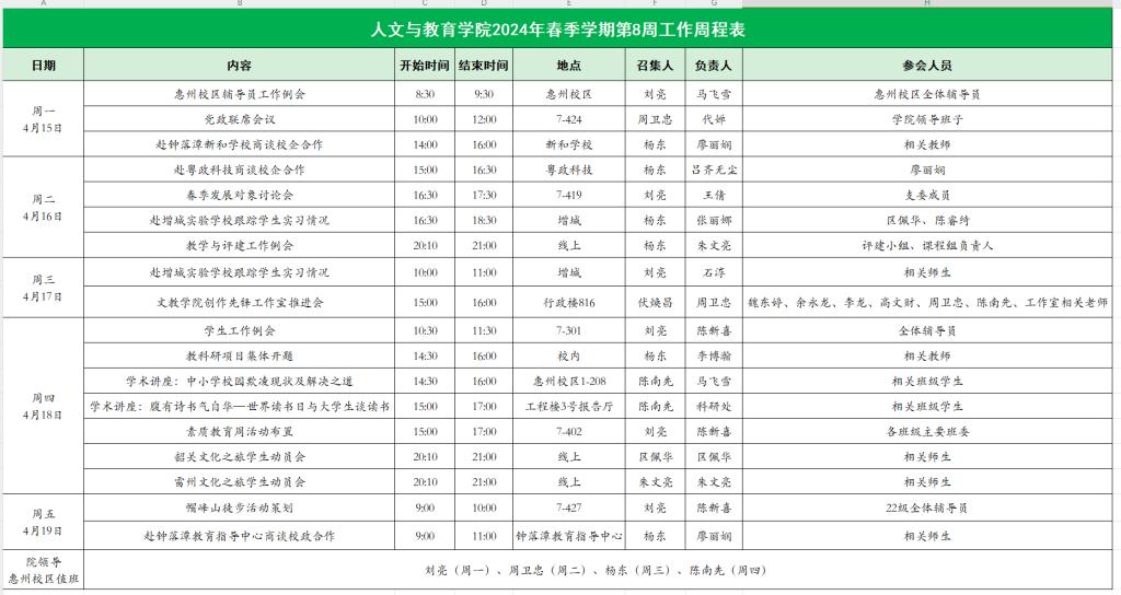 2024年春季学期第8周工作周程表