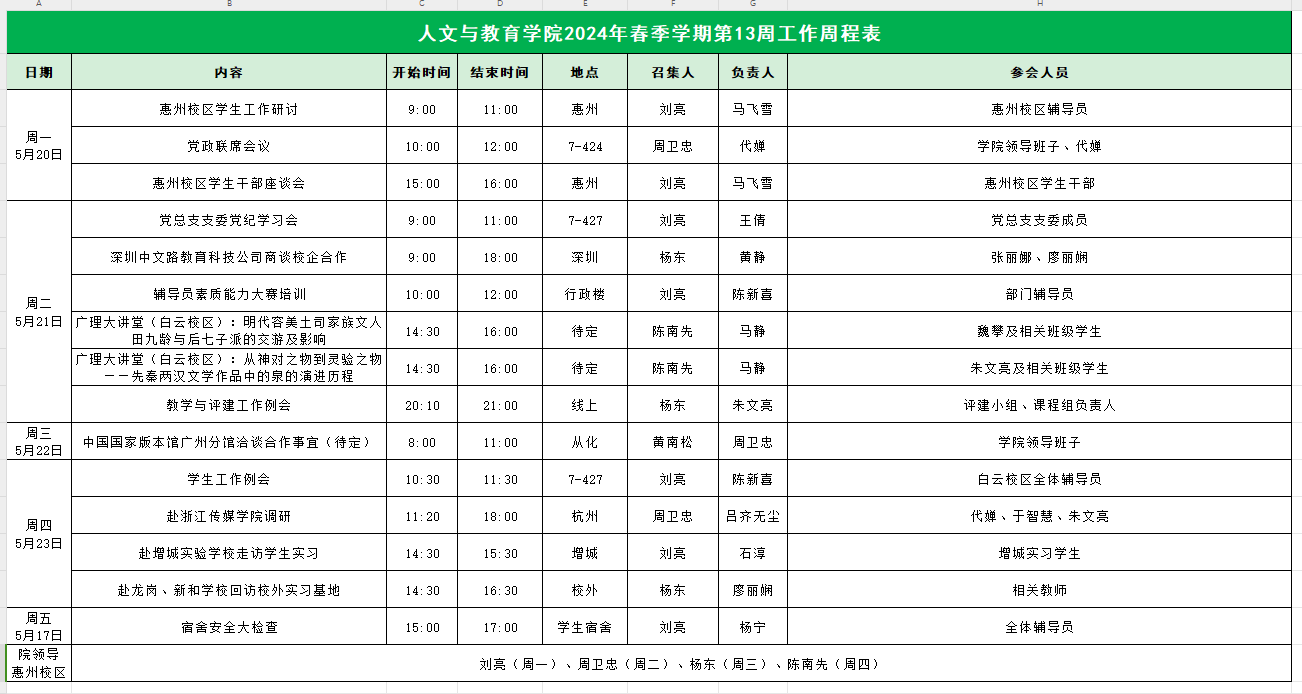 2024年春季学期第13周工作周程表