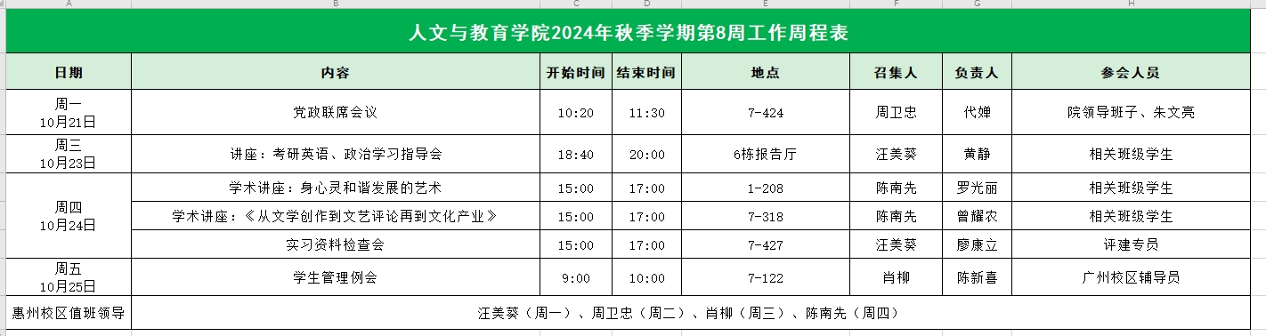 2024年秋季学期第8周工作周程表