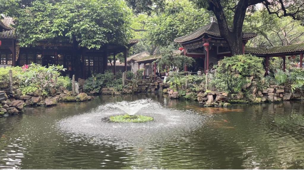 研学的第一站,文教师生来到了有“岭南四大名园之一”之称的清晖园。小径通幽,赏庭园之美。探访此地,可以感受清晖园极具岭南特色的庭院之美,体会别有一番风韵的岭南建筑。岭南庭院的建筑布局有四种,分别是:建筑绕庭布局、前庭后园布局、书斋侧庭布局、前宅后庭布局。而清晖园是家宅,便是属于适合居住且私密性强的前庭后园布局。装修精致,岭南园林中典型的“三雕三塑工艺随处可见,其中以灰塑和砖雕最具岭南风味。