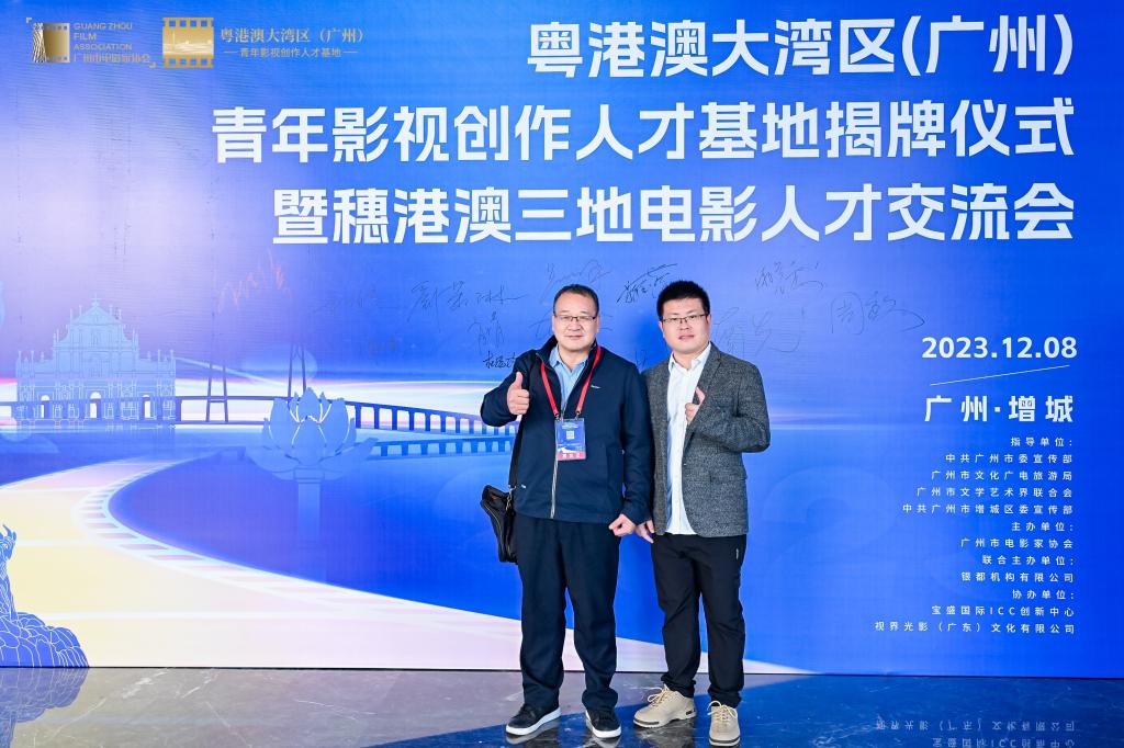 2023年12月8日,伟德国际victor1946副经理陈南先教授、青年教师陈华一同出席粤港澳大湾区(广州)青年影视创作人才基地揭牌仪式暨穗港澳三地电影人才交流会。本次交流会在中共广州市委宣传部、广州市文化广电旅游局、广州市文学艺术界联合会的指导下,由广州市电影家协会牵头,依托增城区委宣传部、宝盛国际ICC创新中心,粤港澳大湾区(广州)青年影视创作人才基地(以下简称“基地”)应运而生,旨在协同促进大湾区电影发展。