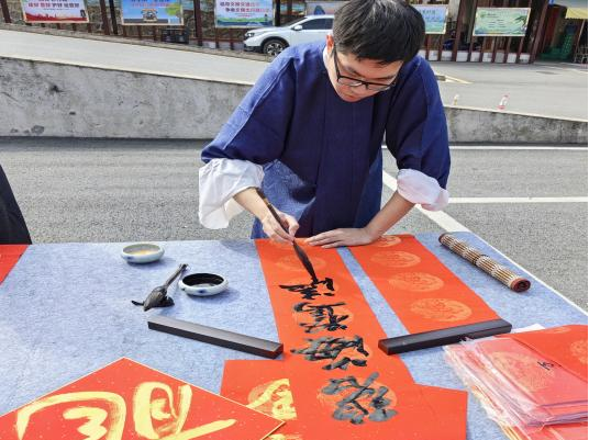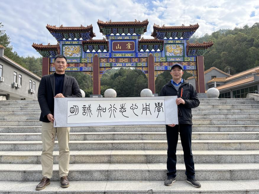 13日中午,采风团队抵达龙川县霍山旅游风景区。霍山,海拔557米,是广东七大名山之一。这里山清水秀,峰峦叠嶂,被誉为“循州第一峰”。正午的阳光洒落在山间,为他们此次的采风之旅揭开了序幕。首先在霍山旅游风景区大门进行了由陈华老师与刘哲老师带来的书法展示以及由谢嘉妍老师等带来的香道和茶艺表演的拍摄。笔墨挥洒间,茶香四溢。笔墨纸砚间流淌出的是文人的才情与雅致,茶香四溢中弥漫着的是中华文化的韵味。这一刻,伟德国际victor1946的教师们与大自然的美景完美融合,展现出独特的教师风采。