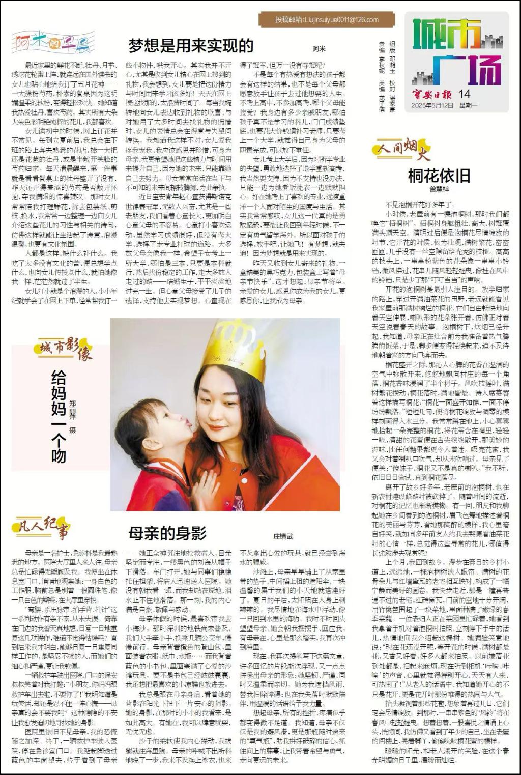 庄镇武同学散文《母亲的身影》发表于2025年5月12日深圳宝安日报;《铁轨上的长明灯 ——走进列车员桑明的站台人生》发表于2025年6月17日的中国网。